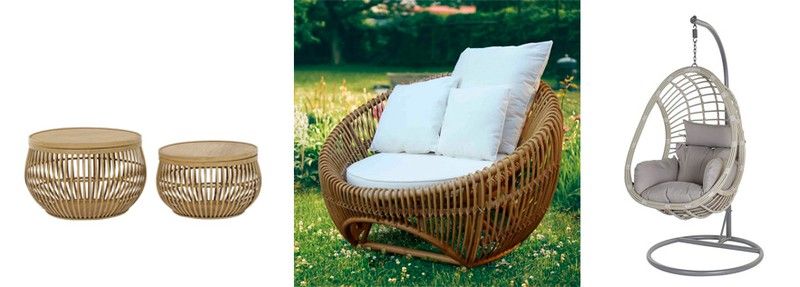 Άλλα υλικά όπως ρατάν και λυγαριά είναι επαναλαμβανόμενα στα είδη κήπου καθώς παρέχουν ζεστασιά στο περιβάλλον.