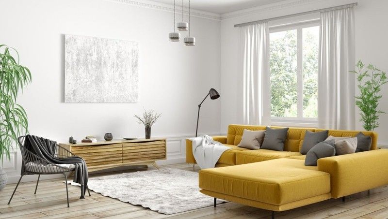 Μπορείτε να ποντάρετε σε έναν μεγάλο καναπέ -ώρα και να προσθέσετε μια πινελιά γκρι με μαξιλάρια ή κουβέρτες.