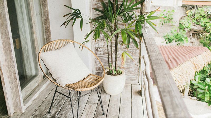 Προσθέστε υφάσματα όπως μαξιλάρια ή χαλιά εξωτερικού χώρου για να προσθέσετε ζεστασιά και χρώμα. Οι κρεμαστές γλάστρες και οι ψηλές γλάστρες είναι επίσης ιδανικές: διακοσμούν, προσθέτουν πρασινάδα και αφήνουν το πάτωμα ελεύθερο για εύκολη μετακίνηση.
