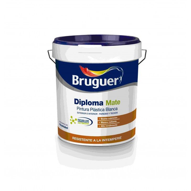 Το Bruguer Diploma Mate πλαστικό χρώμα είναι κατάλληλο τόσο για το εξωτερικό όσο και για το εσωτερικό, χάρη στην μεγάλη αντοχή του στις καιρικές συνθήκες. Το χρώμα αυτό έχει ματ φινίρισμα και είναι ιδιαίτερα κατάλληλο για αλκαλικά υποστρώματα και παλιές επιφάνειες ασβέστη. Παρέχει υψηλή κάλυψη με αντιδιαβρωτικά συντηρητικά, ειδικά κατάλληλα για βαφή σε επιφάνειες τοιχοποιίας και για βαφή παλιών επιφανειών με ασβέστη. Εφαρμόζεται με ρολό, βούρτσα ή πιστόλι ψεκασμού. Υψηλή δυνατότητα πλύσης. Απόδοση: 11 m² / λίτρο, Αραίωση νερού, 10% και καθαρισμός: Νερό.